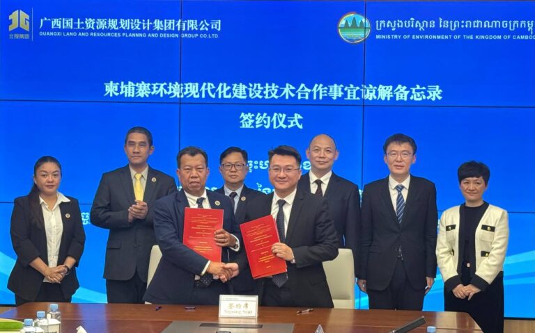 ភ្នំពេញ៖ កម្ពុជា-ចិន ពង្រឹងកិច្ចសហប្រតិបត្តិការបច្ចេកទេសក្នុងការធ្វើទំនើបកម្មវិស័យបរិស្ថានកម្ពុជា។ កិច្ចសហប្រតិបត្តិការនេះ ប្រព្រឹត្តទៅក្រោមអនុស្សរណៈនៃការយោគយល់គ្នា រវាងក្រសួងបរិស្ថាននៃព្រះរាជាណាចក្រកម្ពុជា និងក្រុមហ៊ុនរដ្ឋ GUANGXI LAND AND RESOURCES PLANNING AND DESIGN GROUP CO., LTD នៃខេត្តហ្គ័ងស៊ី ស្តីពី “កិច្ចសហប្រតិបត្តិការបច្ចេកទេសក្នុងការធ្វើទំនើបកម្មវិស័យបរិស្ថានកម្ពុជា”…