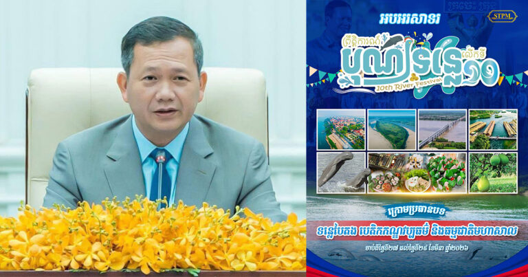 ភ្នំពេញ៖ សម្តេចបវរធិបតី ហ៊ុន ម៉ាណែត នាយករដ្ឋមន្ត្រីនៃកម្ពុជា នៅព្រឹកថ្ងៃទី២៧ ខែមីនា ឆ្នាំ២០២៦នេះ បានបង្ហោះសារអបអរសាទរ ពិធីបុណ្យទន្លេលើកទី១០ ក្រោមប្រធានបទ « ទន្លេបៃតង បេតិកភណ្ឌវប្បធម៌ និងធម្មជាតិមហាសាល»។ ការដែលរៀបចំបុណ្យទន្លេនេះឡើង ក្នុងគោលបំណងលើកកម្ពស់វិស័យទេសចរណ៍ បង្ហាញសក្តានុពលធនធានធម្មជាតិ និងវប្បធម៌របស់តំបន់ជាប់ដងទន្លេ ជាពិសេសខេត្តក្រចេះ ព្រមទាំងជួយជំរុញសេដ្ឋកិច្ចរបស់ខេត្ត…