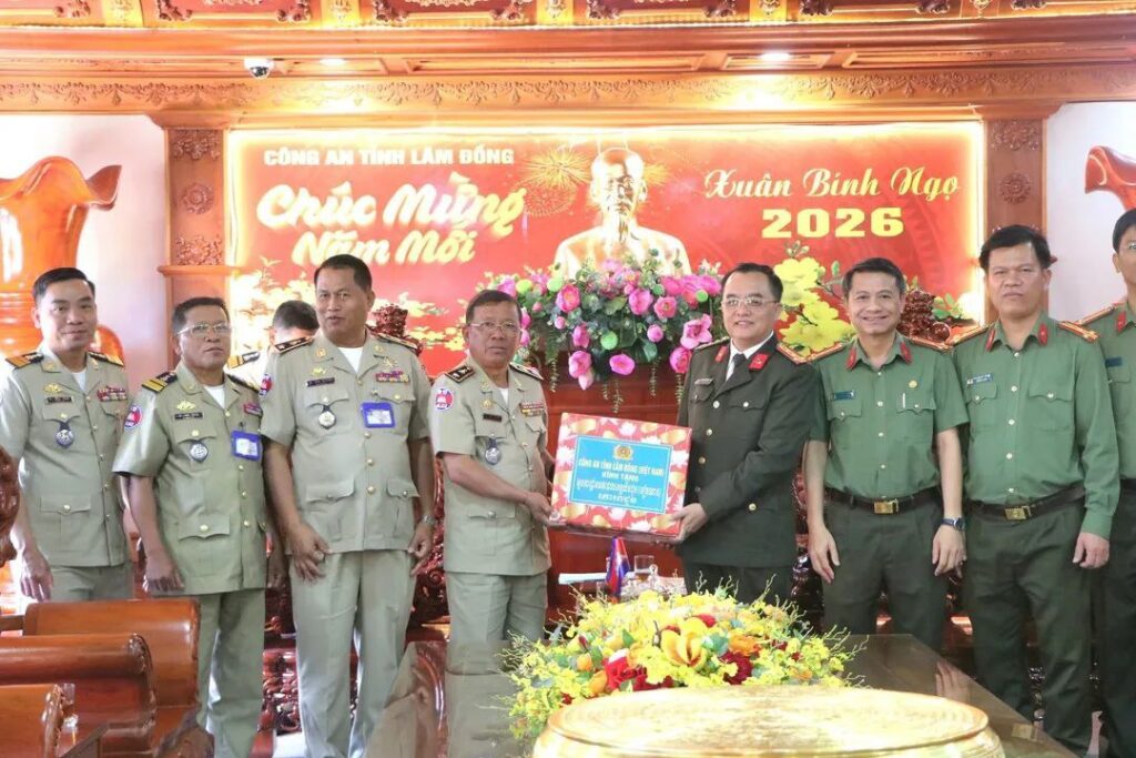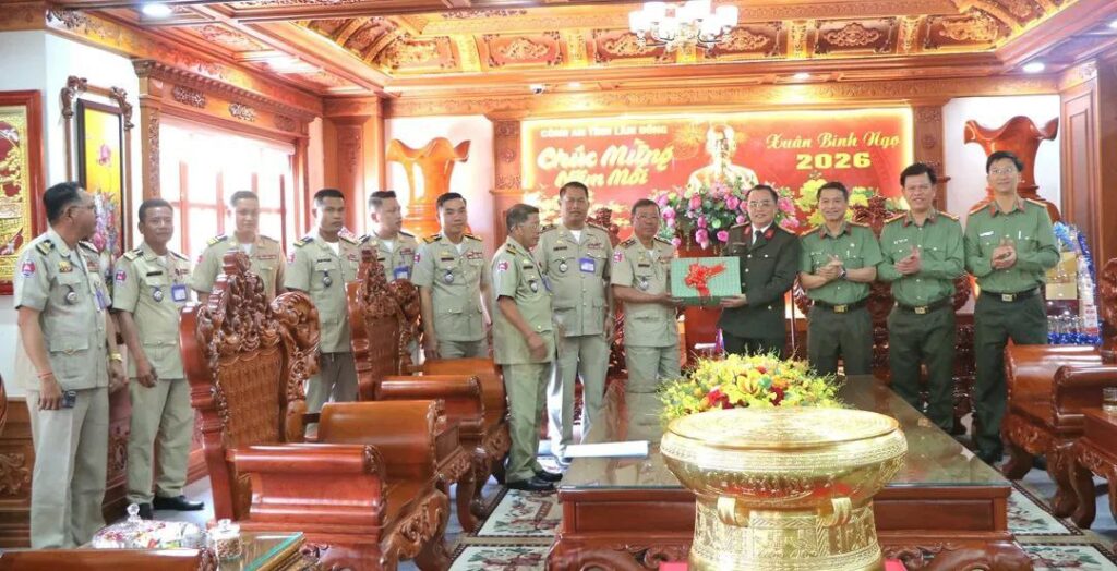 ខេត្តមណ្ឌលគិរី ៖ ដោយអនុវត្តនូវអនុសាសន៍ដ៏ខ្ពង់ខ្ពស់ពី ឯកឧត្តម នាយឧត្តមសេនីយ៍ ស ថេត អគ្គស្នងការនគរបាលជាតិ នារសៀល ថ្ងៃចន្ទ ១៥កើត ខែមាឃ ឆ្នាំម្សាញ់ សប្តស័ក ព.ស ២៥៦៩ ត្រូវនឹង ថ្ងៃទី២ ខែកុម្ភៈ ឆ្នាំ២០២៦ គណៈប្រតិភូ នៃស្នងការដ្ឋាននគរបាលខេត្តមណ្ឌលគិរីអញ្ជើញជួបសំណេះសំណាលសួរសុខទុក្ខ និងជូនពរឆ្នាំថ្មីប្រពៃណីជនជាតិ-វៀតណាម ដែលនិងខិតជិតមកដល់នាប៉ុន្មានថ្ងៃខាងមុខនេះ។