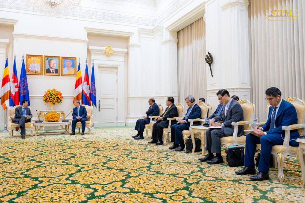 ភ្នំពេញ៖ នារសៀលថ្ងៃទី០៣ ខែកុម្ភៈ ឆ្នាំ២០២៦, សម្តេចមហាបវរធិបតី ហ៊ុន ម៉ាណែត នាយករដ្ឋមន្រ្តី នៃព្រះរាជាណាចក្រកម្ពុជា បានទទួលជួបពិភាក្សាការងារជាមួយ ឯកឧត្តម ស៊ីយ៉េដ យូសាហ្វ រ៉ាហ្សា ជីឡានី (H.E. Syed Yousaf Raza Gilani) ប្រធានព្រឹទ្ធសភា នៃសាធារណរដ្ឋឥស្លាមប៉ាគីស្ថាន នៅវិមានសន្តិភាព ក្នុងឱកាសដែលឯកឧត្តមដឹកនាំគណៈប្រតិភូ អញ្ជើញបំពេញទស្សនកិច្ចផ្លូវការ នៅព្រះរាជាណាចក្រកម្ពុជា ពីថ្ងៃទី២ ដល់ថ្ងៃទី៥ ខែកុម្ភៈ ឆ្នាំ២០២៦ ។