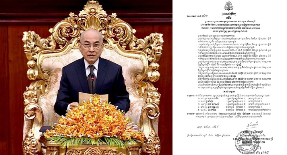 ភ្នំពេញ ៖ ព្រះករុណា ព្រះបាទ សម្តេចព្រះ បរមនាថ នរោត្តម សីហមុនី ព្រះមហាក្សត្រកម្ពុជាបានចេញព្រះរាជក្រឹត្យដាក់វិន័យចៅក្រម៥រូប ដោយបន្ថយថ្នាក់ និងបន្ថយឋានន្តរស័ក្តិ ៕