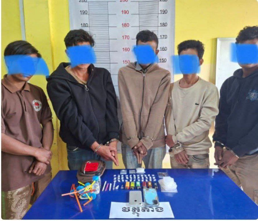 កម្លាំងនគរបាលខេត្តមណ្ឌលគិរី បង្ក្រាបករណីគ្រឿងញៀនក្នុងរោងចំការស្វាយចន្ទី ឃាត់ខ្លួនជនសង្ស័យ៥ នាក់ និងដកហូតថ្នាំញៀន ៣៦កញ្ចប់