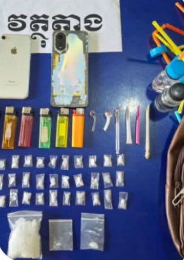 សមត្ថកិច្ចថា វត្ថុតាងដកហូតរួមមាន៖១. គ្រឿងញៀនប្រភេទម៉ាទឹកកកចំនួន ៣៦ កញ្ចប់ (ទម្ងន់ ៣៤.៩៤ ក្រាម)។២. ម៉ូតូចំនួន ៣ គ្រឿង។៣. ទូរស័ព្ទដៃ ២ គ្រឿង និងឧបករណ៍សេពគ្រឿងញៀនមួយចំនួនធំ។