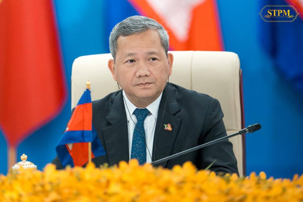ភ្នំពេញ៖ នារសៀលថ្ងៃទី០៦ ខែកុម្ភៈ ឆ្នាំ២០២៦, សម្តេចមហាបវរធិបតី ហ៊ុន ម៉ាណែត នាយករដ្ឋមន្រ្តី នៃព្រះរាជាណាចក្រកម្ពុជា បានអញ្ជើញដឹកនាំកិច្ចប្រជុំនាយករដ្ឋមន្ត្រីបីប្រទេស (កម្ពុជា-ឡាវ-វៀតណាម) ដោយមានការចូលរួមពី ឯកឧត្តម ផាម មិញជិញ នាយករដ្ឋមន្ត្រី នៃសាធារណរដ្ឋសង្គមនិយមវៀតណាម និងឯកឧត្តម សនសៃ ស៊ីផាន់ដន នាយករដ្ឋមន្ត្រី នៃសាធារណរដ្ឋប្រជាធិបតេយ្យប្រជាមានិតឡាវ នៅវិមានសាមគ្គីភាព ក្នុងឱកាសដែលឯកឧត្តមនាយករដ្ឋមន្ត្រីវៀតណាម និងឯកឧត្តមនាយករដ្ឋមន្ត្រីឡាវ បានចូលរួមកិច្ចប្រជុំរវាងថ្នាក់ដឹកនាំគណបក្សប្រជាជនកម្ពុជា, ថ្នាក់ដឹកនាំគណបក្សកុម្មុយនីស្តវៀតណាម និងថ្នាក់ដឹកនាំគណបក្សប្រជាជនបដិវត្តន៍ឡាវ នៅរាជធានីភ្នំពេញ ព្រះរាជាណាចក្រកម្ពុជា ពីថ្ងៃទី៦ដល់ថ្ងៃទី៧ ខែកុម្ភៈ ឆ្នាំ២០២៦។