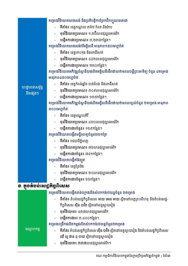 យោងតាមសេចក្ដីប្រកាសព័ត៌មានរបស់ ក្រុមប្រឹក្សាអភិវឌ្ឍន៍កម្ពុជា នៅថ្ងៃទី៥ ខែមករា ឆ្នាំ២០២៦ ថា គម្រោងវិនិយោគដែលមានទីតាំស្ថិតនៅ ក្រៅតំបន់សេដ្ឋកិច្ចពិសេសមានចំនួន ៣៨៧ និងគម្រោងវិនិយោគដែលមានទីតាំងស្ថិតនៅក្នុងតំបន់សេដ្ឋកិច្ច ពិសេសមានចំនួន ២៤៣។