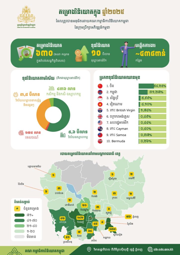 ឆ្នាំ២០២៥ កម្ពុជា ចុះបញ្ជីគម្រោងវិនិយោគ ៦៣០ ក្នុងទំហំទុនវិនិយោគប្រមាណ ១០ប៊ីលានដុល្លារ