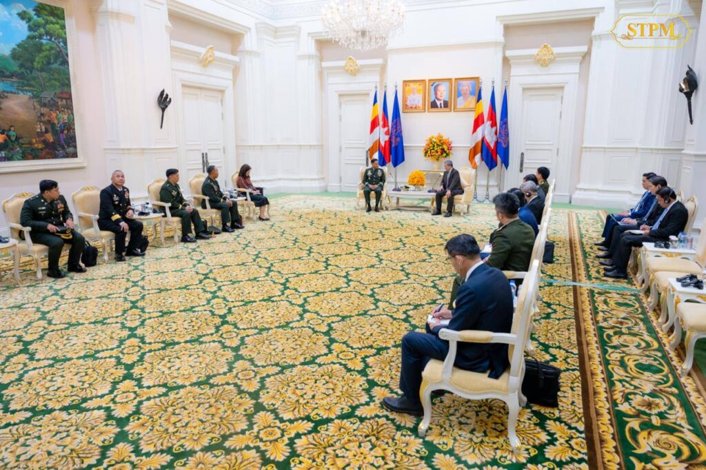 ជាការឆ្លើយតប, សម្ដេចធិបតី បានសម្ដែងនូវការស្វាគមន៍យ៉ាងកក់ក្ដៅចំពោះ ឯកឧត្តមអគ្គមេបញ្ជាការ និងគណៈប្រតិភូ ដែលបានអញ្ជើញមកបំពេញទស្សនកិច្ចនៅកម្ពុជា និងរីករាយដែលបានជួបជាមួយ ឯកឧត្តមអគ្គមេបញ្ជាការជាថ្មីម្តងទៀត។ សម្ដេចធិបតី ក៏បានសម្ដែងនូវការពេញចិត្ត និងវាយតម្លៃខ្ពស់ចំពោះវឌ្ឍនភាពនៃទំនាក់ទំនង និងកិច្ចសហប្រតិបត្តិការក្នុងវិស័យការពារជាតិ នៃប្រទេសទាំងពីរ ជាពិសេស កិច្ចសហប្រតិបត្តិការក្នុងការចែករំលែកបទពិសោធន៍ និងការកសាងសមត្ថភាពរវាងកងទ័ពនៃប្រទេសទាំងពីរ។ សម្ដេចធិបតី បានបង្ហាញនូវក្ដីសង្ឃឹមយ៉ាងមុតមាំថា កិច្ចសហប្រតិបត្តិការរវាងកងទ័ពទាំងពីរ នឹងត្រូវបានពង្រឹង និងពង្រីកបន្ថែមទៀត ទាំងផ្នែកកងទ័ពជើងគោក ជើងទឹក និងជើងអាកាស។