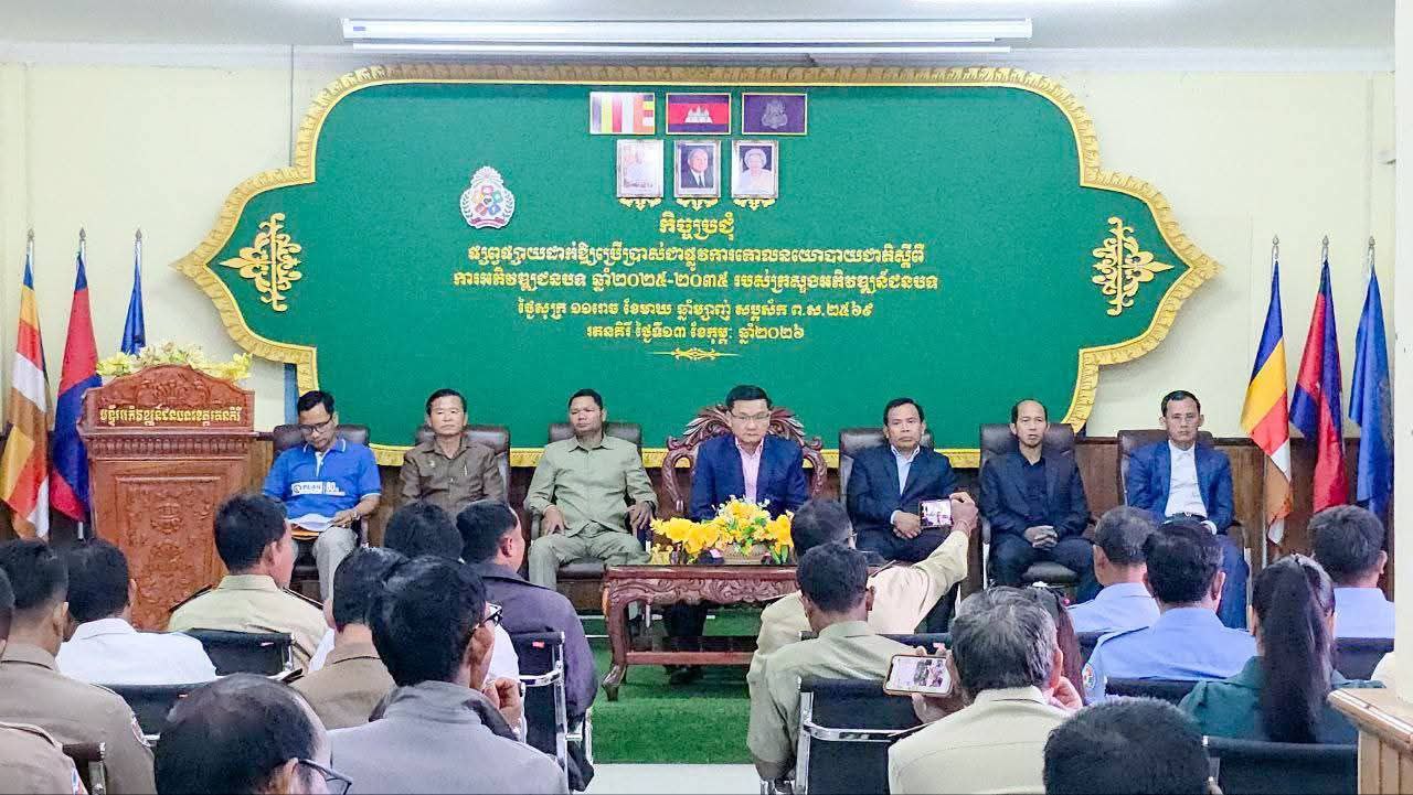 ខេត្តរតនគិរី ៖ នៅព្រឹកថ្ងៃទី១៣ ខែកុម្ភៈ ឆ្នាំ២០២៦នេះ ឯកឧត្តម ហុង ឡុង រដ្ឋលេខាធិការក្រសួងអភិវឌ្ឍន៍ជនបទ តំណាងដ៏ខ្ពង់ខ្ពស់ឯកឧត្តម ឆាយ ឫទ្ធិសែន រដ្ឋមន្ត្រីក្រសួងអភិវឌ្ឍន៍ជនបទ បានអញ្ជើញជាអធិបតីក្នុងកិច្ចប្រជុំផ្សព្វផ្សាយ «គោលនយោបាយជាតិស្តីពីការអភិវឌ្ឍជនបទឆ្នាំ ២០២៥-២០៣៥» ។ កិច្ចប្រជុំនេះប្រារព្ធធ្វើឡើងនៅសាលប្រជុំមន្ទីរអភិវឌ្ឍន៍ជនបទខេត្តរតនគិរីដោយមានការចូលរួមពីជ្ញាធរដែនដី និងមន្ត្រីពាក់ព័ន្ធយ៉ាងច្រើនកុះករ ដែលបង្ហាញពីសាមគ្គីភាពក្នុងការអនុវត្តយុទ្ធសាស្ត្រជាតិ។