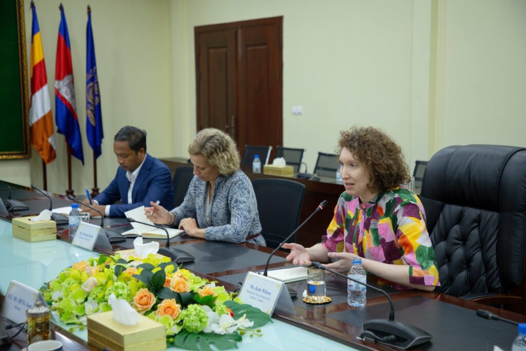 ភ្នំពេញ៖ ឯកឧត្តម ហេង សួរ រដ្ឋមន្ត្រីក្រសួងការងារ និងបណ្ដុះបណ្ដាលវិជ្ជាជីវៈ បានទទួលជួបសម្ដែងការគួរសម និងពិភាក្សាការងារជាមួយលោកស្រី Kate Wilson ប្រធានកម្មវិធីប្រចាំតំបន់អាស៊ី នៃមជ្ឈមណ្ឌលសម្រាប់អាជីវកម្មប្រកបដោយការទទួលខុសត្រូវរបស់អង្គការសម្រាប់កិច្ចសហប្រតិបត្តិការ និងអភិវឌ្ឍន៍សេដ្ឋកិច្ច (OECD) នាព្រឹកថ្ងៃទី២ ខែមីនា ឆ្នាំ២០២៦ នៅទីស្តីការក្រសួង ដើម្បីស្វែងរកឱកាសពង្រឹងកិច្ចសហប្រតិបត្តិការ និងពិភាក្សាលើយុទ្ធសាស្ត្រនៃការអនុវត្តអាជីវកម្មប្រកបដោយការទទួលខុសត្រូវ (RBC) ដែលស្របតាមអាទិភាពគោលនយោបាយបច្ចុប្បន្នរបស់ក្រសួងការងារ និងបណ្តុះបណ្តាលវិជ្ជាជីវៈ។