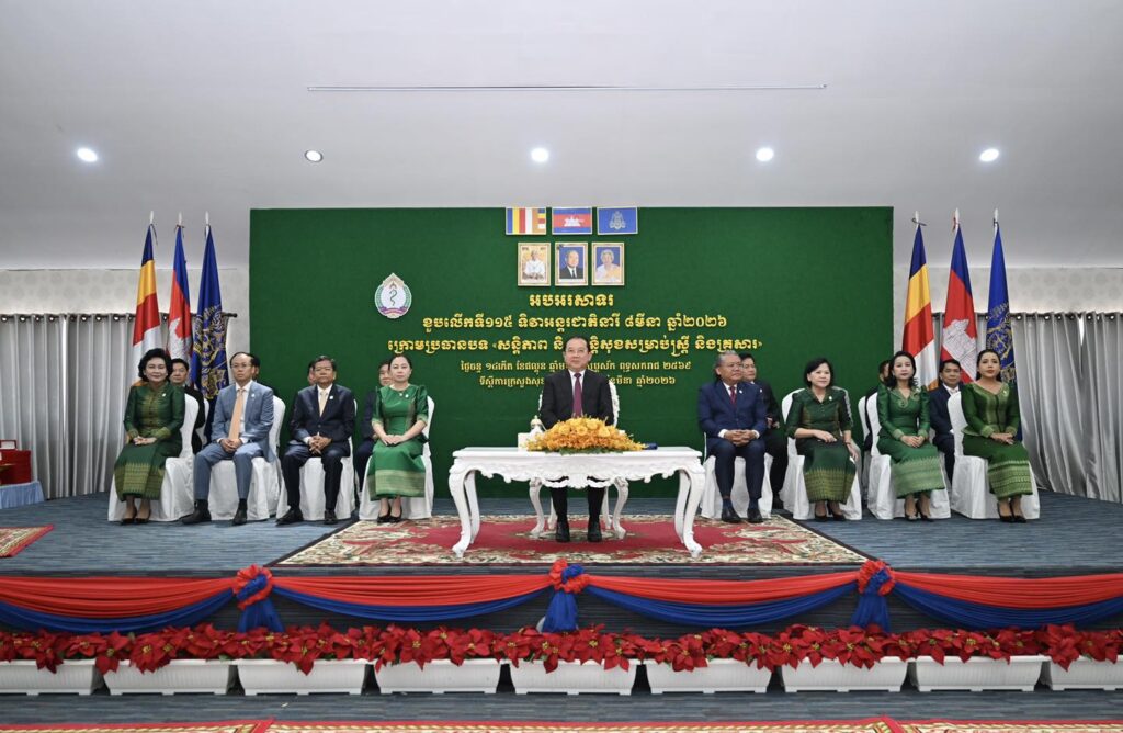 ភ្នំពេញ៖ ថ្ងៃចន្ទ ១៤កើត ខែផល្គុន ឆ្នាំម្សាញ់ សប្តស័ក ព.ស.២៥៦៩ ត្រូវនឹងថ្ងៃទី២ ខែមីនា ឆ្នាំ២០២៦ នៅទីស្តីការក្រសួងសុខាភិបាល ឯកឧត្តមសាស្រ្តាចារ្យ ឈាង រ៉ា រដ្ឋមន្រ្តីក្រសួងសុខាភិបាល បានអញ្ជើញជាអធិបតី ក្នុងពិធីអបអរសាទរខួបអនុស្សាវរីយ៍លើកទី១១៥ ទិវាអន្តរជាតិនារី ៨ មីនា ឆ្នាំ២០២៦ ក្រោមប្រធានបទ៖ «សន្តិភាព និងសន្តិសុខសម្រាប់ស្រ្តី និងគ្រួសារ» (Peace and Security for Women and Families)។