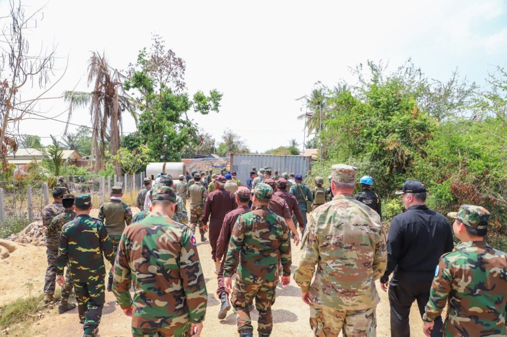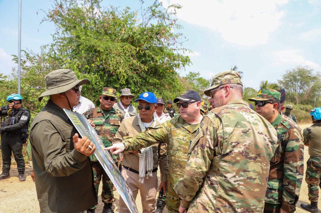 ភ្នំពេញ ៖ លោកស្រីឧត្តមសេនីយ៍ឯក ម៉ាលី សុជាតា អ្នកនាំពាក្យក្រសួងការពារជាតិកម្ពុជាបានថ្លែងថា នៅថ្ងៃទី៤ ខែមីនា ឆ្នាំ២០២៦ ក្រសួងការពារជាតិ បានសម្របសម្រួលជូនប្រតិភូអនុព័ន្ធយោធាបរទេស ប្រចាំកម្ពុជាចំនួន ១២ប្រទេស ចុះទៅពិនិត្យទីតាំងជាក់ស្តែងនៅភូមិព្រៃចាន់ ឃុំអូរបីជាន់ ស្រុកអូរជ្រៅ ខេត្តបន្ទាយមានជ័យ ។