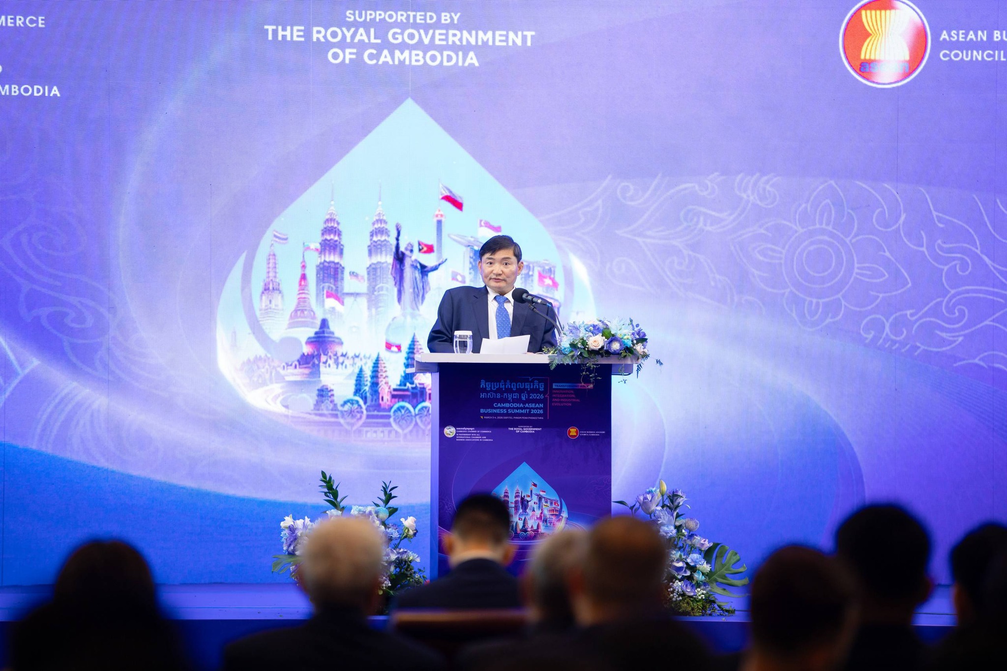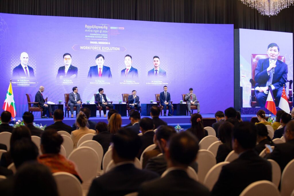 ភ្នំពេញ៖ ឯកឧត្តម ហេង សួរ រដ្ឋមន្រ្តីក្រសួងការងារ និងបណ្តុះបណ្តាលវិជ្ជាជីវៈ នាថ្ងៃទី៤ ខែមីនា ឆ្នាំ២០២៦ នេះ បានអញ្ជើញចូលរួមថ្លែងសុន្ទរកថាគន្លឹះ និងជាវាគ្មិនកិត្តិយសក្នុង «កិច្ចប្រជុំកំពូលធុរកិច្ចអាស៊ាន-កម្ពុជា ឆ្នាំ២០២៦» ក្រោមប្រធានបទ «ជំនាញសម្រាប់ថ្ងៃស្អែក៖ ការវិវត្តនៃវិស័យបណ្តុះបណ្តាលបច្ចេកទេស និងវិជ្ជាជីវៈ ក្នុងពិភពលោកទំនើប»។ ក្នុងឱកាសនោះ ឯកឧត្តមរដ្ឋមន្ត្រី បានគូសបញ្ជាក់ថា ការវិនិយោគលើមូលធនមនុស្ស គឺជាការវិនិយោគលើផលចំណេញរួមនាពេលអនាគត។