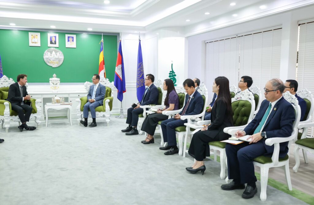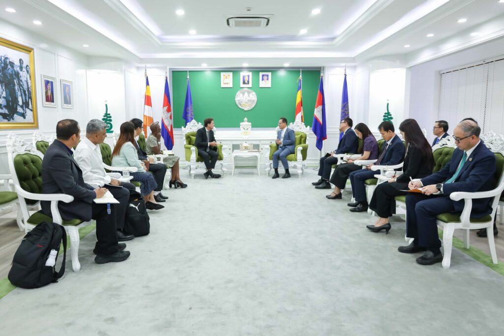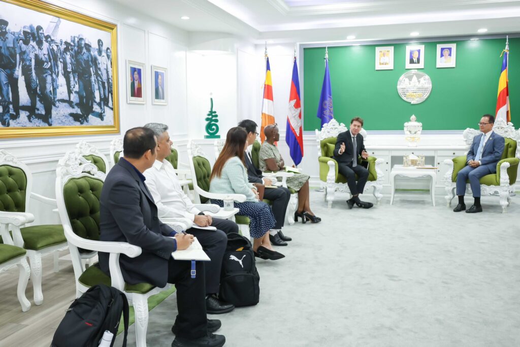 ភ្នំពេញ៖ «ការលើកកម្ពស់ជីវភាពសហគមន៍មូលដ្ឋាន និងជំរុញភាពជាម្ចាស់ក្នុងកិច្ចការពារ និងអភិរក្សធនធានធម្មជាតិ គឺជាជ្រុងនៃភាពបៃតង និងចីរភាព ដែលក្រសួងបរិស្ថានកំពុងតែ បានបោះជំហានទៅមុខជាបន្តបន្ទាប់»។ នេះជាការលើកឡើងរបស់ ឯកឧត្តមបណ្ឌិត អ៊ាង សុផល្លែត រដ្ឋមន្រ្តីក្រសួងបរិស្ថាន ថ្លែងប្រាប់លោក Christophe Crepin អ្នកគ្រប់គ្រងប្រចាំតំបន់ របស់ធនាគារពិភពលោក ទទួលបន្ទុកបរិស្ថាន និងធនធានធម្មជាតិតំបន់អាស៊ីបូព៌ា និងប៉ាស៊ីហ្វិក នៅក្នុងឱកាសទទួលជួប សម្តែងការគួរសម និងពិភាក្សា លើកិច្ចសហប្រតិបត្តិការ គម្រោងនិរន្តរភាព តំបន់ទេសភាព និងទេសចរណ៍ធម្មជាតិកម្ពុជា (CSLEP) និងពិនិត្យមើលលទ្ធផលបន្តកិច្ចសហការ គម្រោងគោលដៅបៃតង( Cam-GDP) និង គម្រោង បង្កើន/ពង្រីកសកម្មភាពឆ្លើយតប នឹងការប្រែប្រួលអាកាសធាតុ ដើម្បីកាត់បន្ថយការបញ្ចេញឧស្ម័នផ្ទះកញ្ចក់ (SCALE) នៅទីស្តីការក្រសួងបរិស្ថាន នាព្រឹកថ្ងៃទី៦ ខែមីនា ឆ្នាំ២០២៦។