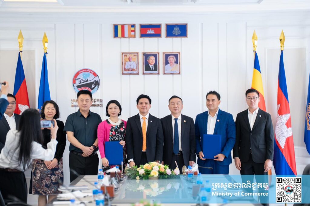 ពិធីចុះហត្ថលេខានេះ ធ្វើឡើងក្នុងនៅទីស្តីការក្រសួងពាណិជ្ជកម្ម ក្នុងឱកាសដែលលោក សំហេង បូរ៉ា រដ្ឋលេខាធិការក្រសួងពាណិជ្ជកម្ម និងជាប្រធានក្រុមការងារជំរុញការនាំចេញ (EPTF) បានអនុញ្ញាតជូន លោក Jiang Xiaofei នាយកនៃគណៈកម្មាធិការការងារពង្រីកសហគ្រាសនៅក្រៅប្រទេស នៃវិទ្យាស្ថានចិនសម្រាប់យុទ្ធសាស្រ្តនវានុវត្តន៍ និងអភិវឌ្ឍន៍ ដឹកនាំគណៈប្រតិភូក្រុមហ៊ុន China Bonded Port Group Co., Ltd. និងតំណាងក្រុមហ៊ុន Men Sarun MDR Co., Ltd. ចូលជួបសម្តែងការគួរសម និងពិភាក្សាការងារ។ ជំនួបនេះ ក៏មានការអញ្ជើញចូលរួមពី លោកស្រីអនុរដ្ឋលេខាធិការ លោកអគ្គនាយកជំរុញពាណិជ្ជកម្ម និងមន្ត្រីជំនាញក្រសួងពាណិជ្ជកម្មផងដែរ។ ជំនួបនេះត្រូវបានរៀបចំឡើងក្នុងគោលបំណងពង្រឹង និងពង្រីកកិច្ចសហប្រតិបត្តិការសេដ្ឋកិច្ច ពាណិជ្ជកម្ម និងវិនិយោគទ្វេភាគីកម្ពុជា-ចិន ព្រមទាំងស្វែងយល់ពីសក្តានុពលក្នុងការជំរុញការនាំចេញកសិផលកម្ពុជា។