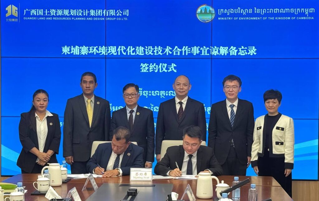 ភ្នំពេញ៖ កម្ពុជា-ចិន ពង្រឹងកិច្ចសហប្រតិបត្តិការបច្ចេកទេសក្នុងការធ្វើទំនើបកម្មវិស័យបរិស្ថានកម្ពុជា។ កិច្ចសហប្រតិបត្តិការនេះ ប្រព្រឹត្តទៅក្រោមអនុស្សរណៈនៃការយោគយល់គ្នា រវាងក្រសួងបរិស្ថាននៃព្រះរាជាណាចក្រកម្ពុជា និងក្រុមហ៊ុនរដ្ឋ GUANGXI LAND AND RESOURCES PLANNING AND DESIGN GROUP CO., LTD នៃខេត្តហ្គ័ងស៊ី ស្តីពី “កិច្ចសហប្រតិបត្តិការបច្ចេកទេសក្នុងការធ្វើទំនើបកម្មវិស័យបរិស្ថានកម្ពុជា” ដែលបានចុះហត្ថលេខា ក្រោមអធិបតីភាពឯកឧត្តម ខ្វៃ អាទិត្យា អនុរដ្ឋលខាធិការ និងលោក ឈីត ឌី អគ្គនាយករង នៃក្រុមហ៊ុនរដ្ឋ GUANGXI LAND AND RESOURCES PLANNING AND DESIGN GROUP CO., LTD។
