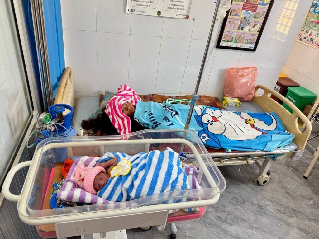 ស្ត្រីជាជនភៀសសឹក កំពុងសម្រាលកូន នៅមណ្ឌលសុខភាព ទីងចាក់ ឃុំទីងចាក់ ស្រុកបរកែវ ទទួលបានអំណោយមនុស្សធម៌ពី សាខាកាកបាទក្រហមកម្ពុជា ខេត្តរតនគិរី