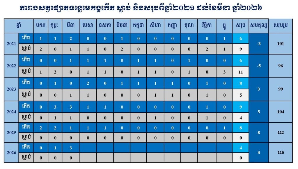 សម្រាប់ឆ្នាំ២០២៦ នេះជាកូនផ្សោតទី១ កើតនៅខេត្តស្ទឹងត្រែង និងជាកូនផ្សោតទី៤ បើរាប់ទាំងកូនផ្សោតកើតថ្មីនៅខេត្តក្រចេះផង។ តាមរយៈវត្តមានថ្មីនៃកូនផ្សោតនេះ ចំនួនសត្វផ្សោតទន្លេមេគង្គនៅកម្ពុជា មានចំនួនសរុប ១១៦ក្បាល។