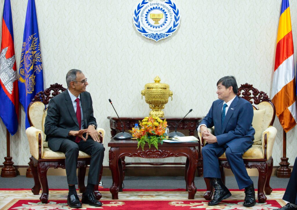 ភ្នំពេញ៖ ឯកឧត្តម ហេង សួរ រដ្ឋមន្ត្រីក្រសួងការងារ និងបណ្ដុះបណ្ដាលវិជ្ជាជីវៈ បានទទួលជួបសម្តែងការគួរសម និងពិភាក្សាការងារជាមួយលោក Suresh Natarajan នាយកប្រតិបត្តិនៃវិទ្យាស្ថាន ITE Education Services (ITEES) នៅប្រទេសសិង្ហបុរី នារសៀលថ្ងៃទី២៤ ខែមីនា ឆ្នាំ២០២៦ នៅទីស្តីការក្រសួង ដែលក្នុងឱកាសនោះដែរ ភាគីទាំងពីរ បានចុះហត្ថលេខាលើ អនុស្សរណៈនៃការយោគយល់គ្នា (MoU) ស្តីពី “កិច្ចសហប្រតិបត្តិការ លើវិស័យអប់រំបណ្ដុះបណ្ដាល បច្ចេកទេស និង វិជ្ជាជីវៈ (TVET)” ដើម្បីពង្រីកកិច្ចសហការ ក្នុងការលើកកម្ពស់ ស្តង់ដាបណ្តុះបណ្តាល វិជ្ជាជីវៈនៅកម្ពុជា ឱ្យកាន់តែមានគុណភាព ពេញលេញក្នុង ការឆ្លើយតបទៅ នឹងតម្រូវការផ្លាស់ប្តូរឧស្សាហកម្ម និងការប្រកួតប្រជែងជាសកល។