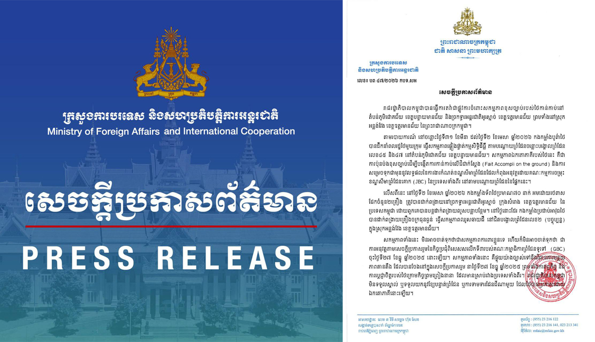 ក្រសួងការបរទេសកម្ពុជា បានលើកឡើងថា សកម្មភាពទាំងនេះ មិនអាចចាត់ទុកថាជាសកម្មភាពការពារខ្លួនទេ ហើយក៏មិនអាចចាត់ទុកថាជាការអនុវត្តតាមសេចក្ដីប្រកាសរួមនៃកិច្ចប្រជុំពិសេសសលើកទី៣របស់គណៈកម្មាធិការព្រំដែនទូទៅ(GBC)ចុះថ្ងៃទី២៧ ខែធ្នូ ឆ្នាំ២០២៥នោះឡើយ។