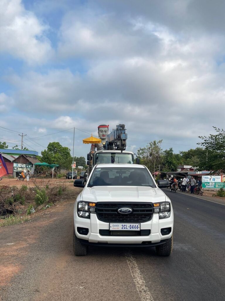 មណ្ឌលគិរី ៖ ថ្ងៃទី៦ ខែមេសាឆ្នាំ២០២៦ អភិបាលស្រុកកែវសីមាលោកសាន គឹមអ៊ាប អមជាមួយមន្ត្រីកងកម្លាំងប្រដាប់អាវុធ លោកតាលោកយាយ ព្រះសង្ឃ ប្រជាពលរដ្ឋ នៅព្រឹកថ្ងៃទី៦ខែមេសានេះ បានធ្វើពិធីដង្ហែរូបសំណាកលោកតា ក្រហម ក ដើម្បីតម្កល់នៅភ្នំទឹកខួប ស្ថិតនៅភូមិអូរអាម ឃុំស្រែខ្ទុម ស្រុកកែវសីមា ខេត្តមណ្ឌលគិរី។