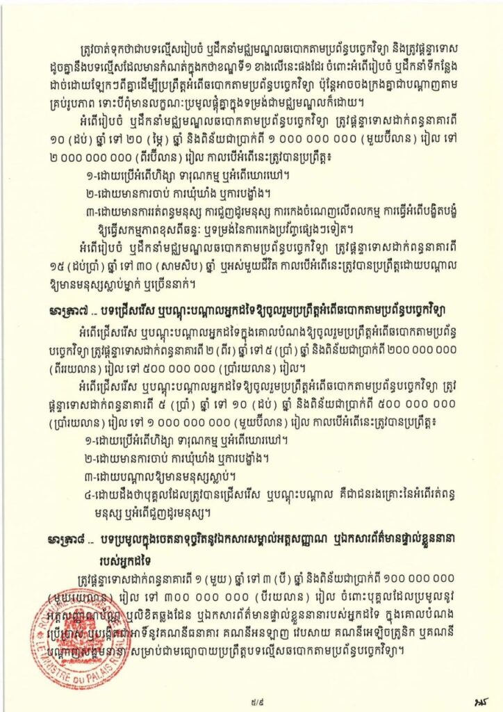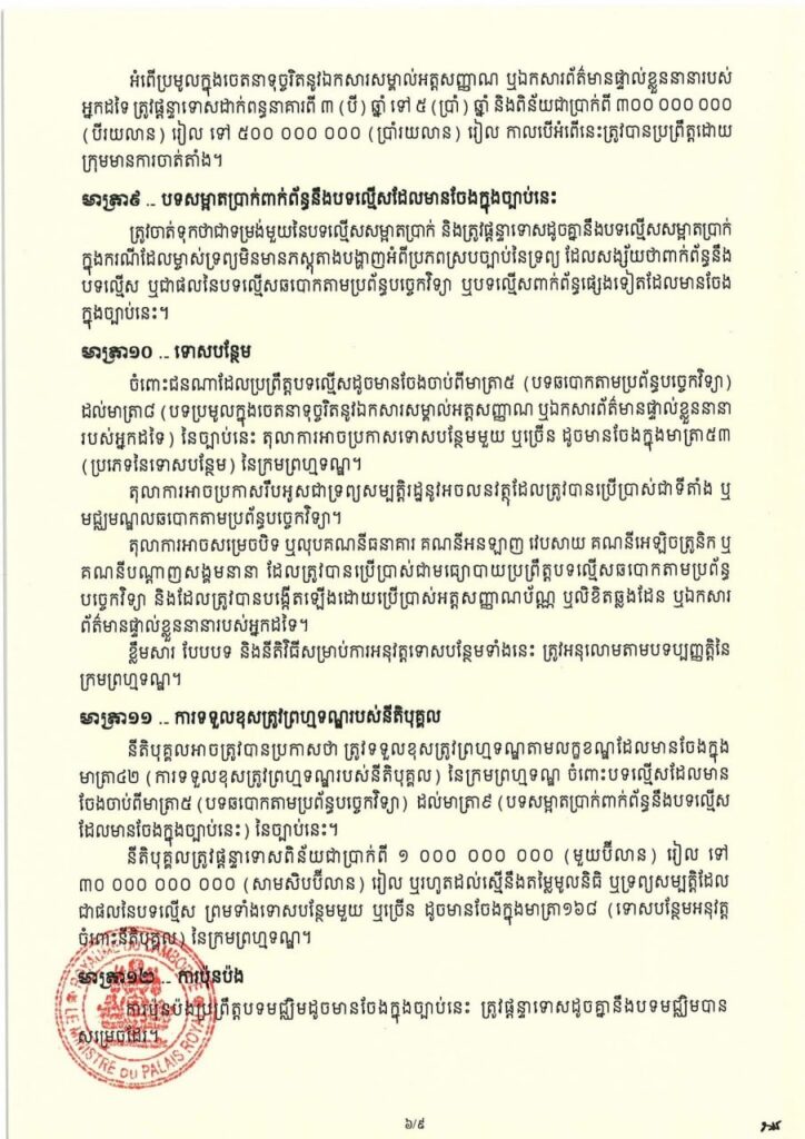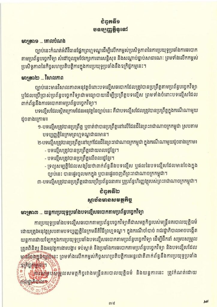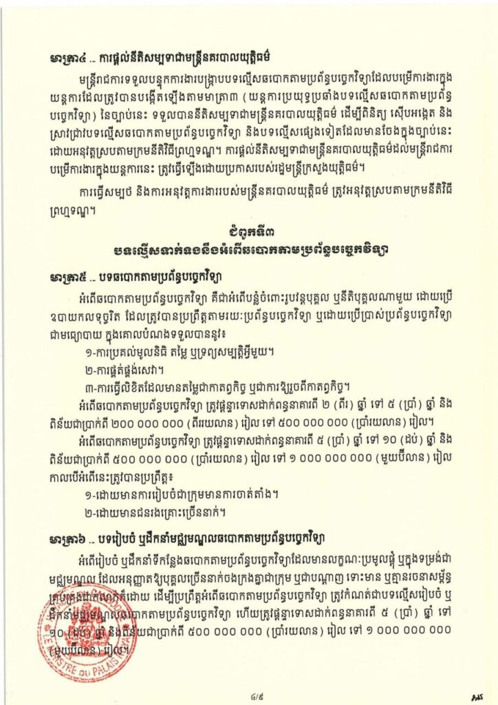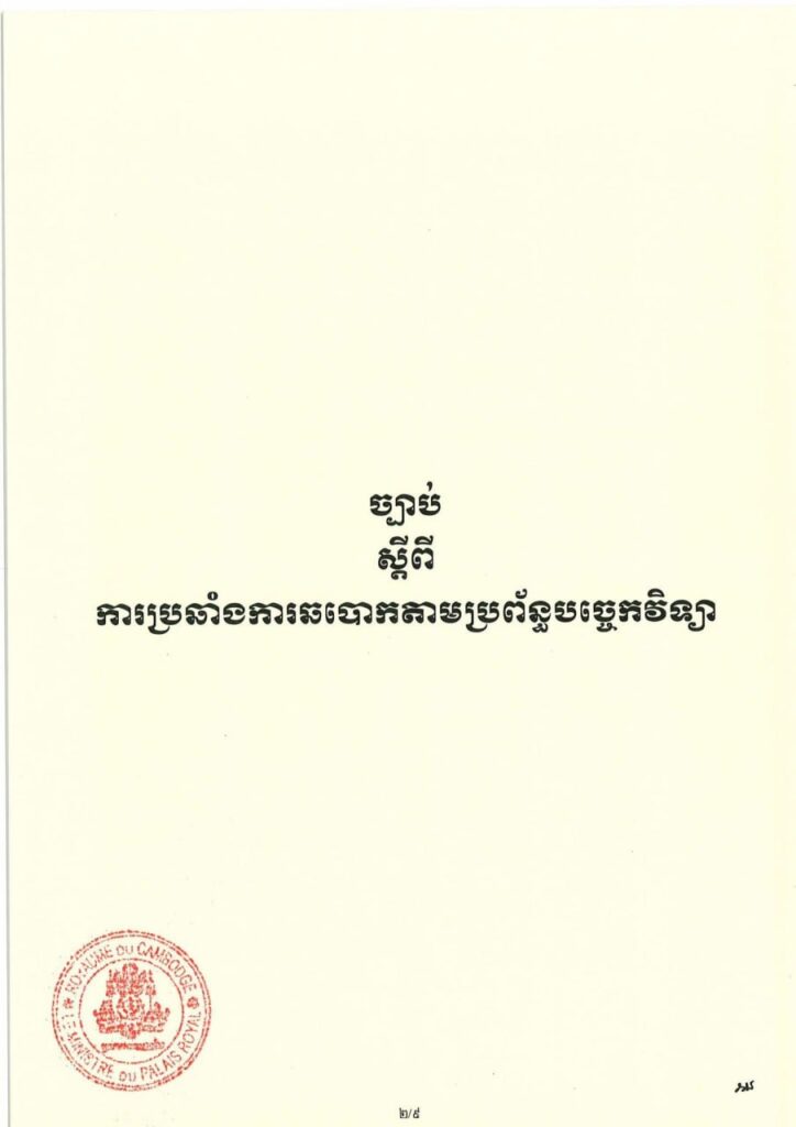 ប្រមុខរដ្ឋស្តីទី ប្រកាសឱ្យប្រើច្បាប់ ស្តីពី ការប្រឆាំងការឆបោកតាមប្រព័ន្ធបច្ចេកវិទ្យា