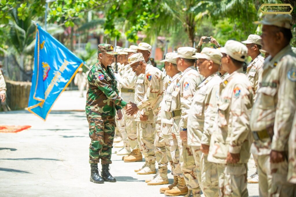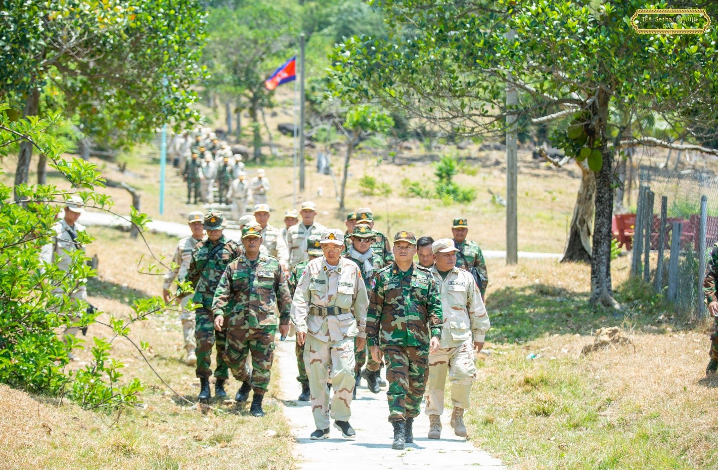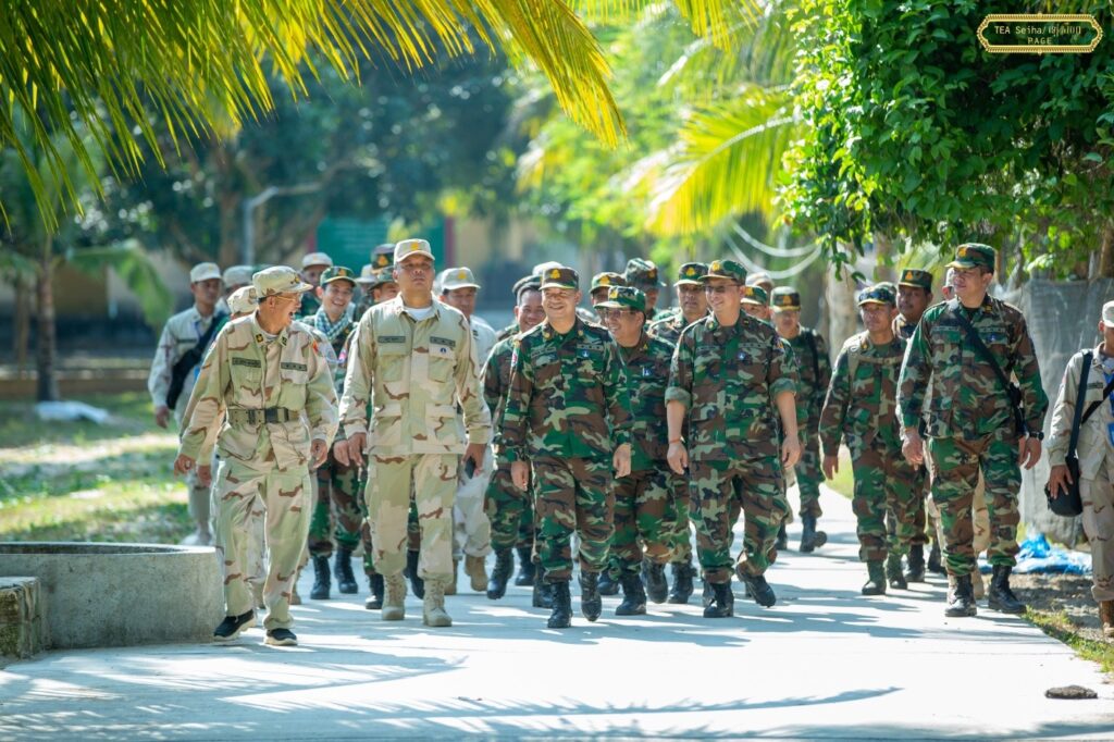 ភ្នំពេញ ៖ នាយឧត្តមសេនីយ៍ ទៀ សីហា ឧបនាយករដ្ឋមន្ត្រី រដ្ឋមន្ត្រីក្រសួងការពារជាតិ នៅព្រឹកថ្ងៃទី៧ ខែមេសា ឆ្នាំ២០២៦ បានបន្តចុះសួរសុខទុក្ខ និងជូនពរដល់យោធិន កំពុងបំពេញបេសកកម្មការពារបូរណភាពទឹកដី នៅសមរភូមិមុខ តាមបណ្តោយព្រំដែនកម្ពុជា-ថៃ តាមបណ្តាកោះ-ឆ្នេរ នៃទិសយោធភូមិភាគទី៣ ក្នុងភូមិសាស្រ្តខេត្តកោះកុង ខេត្តព្រះសីហនុ ៕