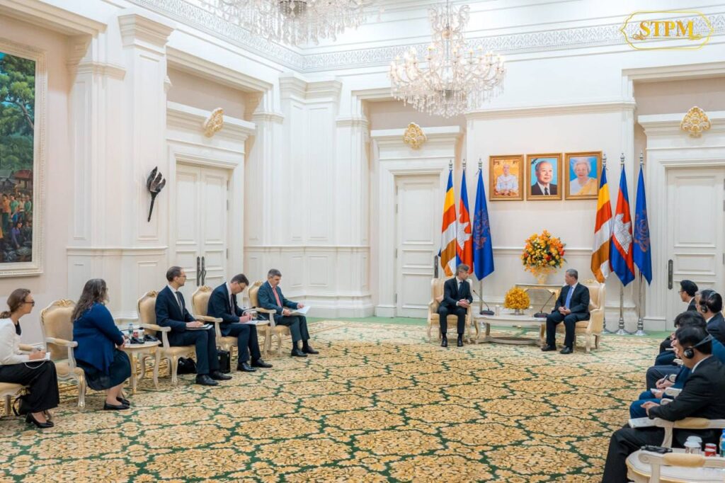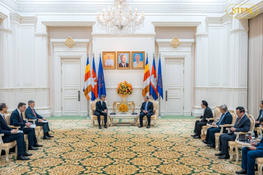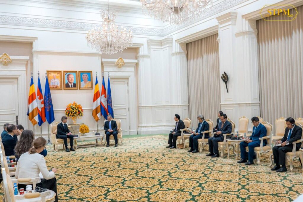 ភ្នំពេញ៖ នាព្រឹកថ្ងៃទី២៤ ខែមេសា ឆ្នាំ២០២៦, សម្តេចមហាបវរធិបតី ហ៊ុន ម៉ាណែត នាយករដ្ឋមន្ត្រីនៃព្រះរាជាណាចក្រកម្ពុជា បានអនុញ្ញាតឱ្យ ឯកឧត្តម Kęstutis Budrys រដ្ឋមន្ត្រីក្រសួងការបរទេសនៃសាធារណរដ្ឋលីទុយអានី ចូលជួបសម្តែងការគួរសម និងពិភាក្សាការងារ នៅវិមានសន្តិភាព។