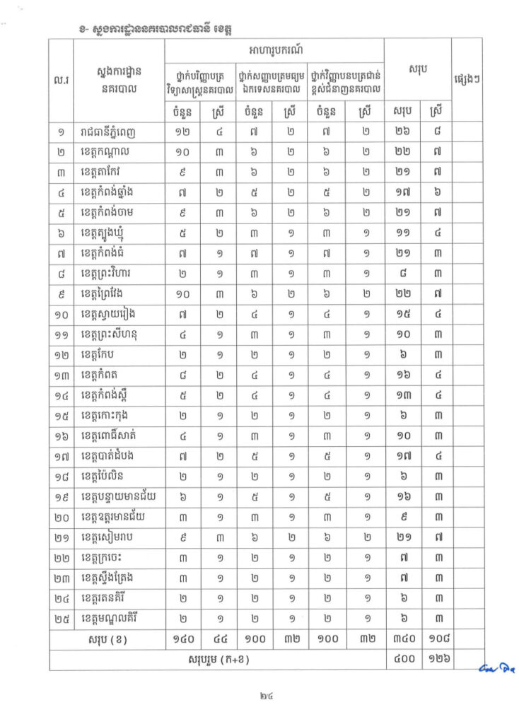 ភ្នំពេញ ៖ ក្រសួងមហាផ្ទៃ ចេញសេចក្តី ជូនដំណឹង ស្តីពី ការប្រឡងប្រជែងជ្រើសរើសនិស្សិត និង សិស្សនគរបាល អាហារូបករណ៍ប្រចាំឆ្នាំ ឱ្យចូលសិក្សាថ្នាក់ បរិញ្ញាបត្រវិទ្យាសាស្ត្រនគរបាល ថ្នាក់សញ្ញាបត្រមធ្យម ឯកទេសនគរបាល និងថ្នាក់វិញ្ញាបនបត្រជាន់ខ្ពស់ជំនាញនគរបាល នៅបណ្ឌិត្យសភា នគរបាលកម្ពុជា ចំនួន ៤០០នាក់ ដើម្បីក្លាយជា នាយនគរបាល និងនាយនគរបាលរងបន្តវេន ក្នុងក្របខ័ណ្ឌមន្ត្រី នគរបាលជាតិកម្ពុជា៕