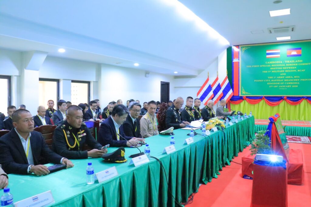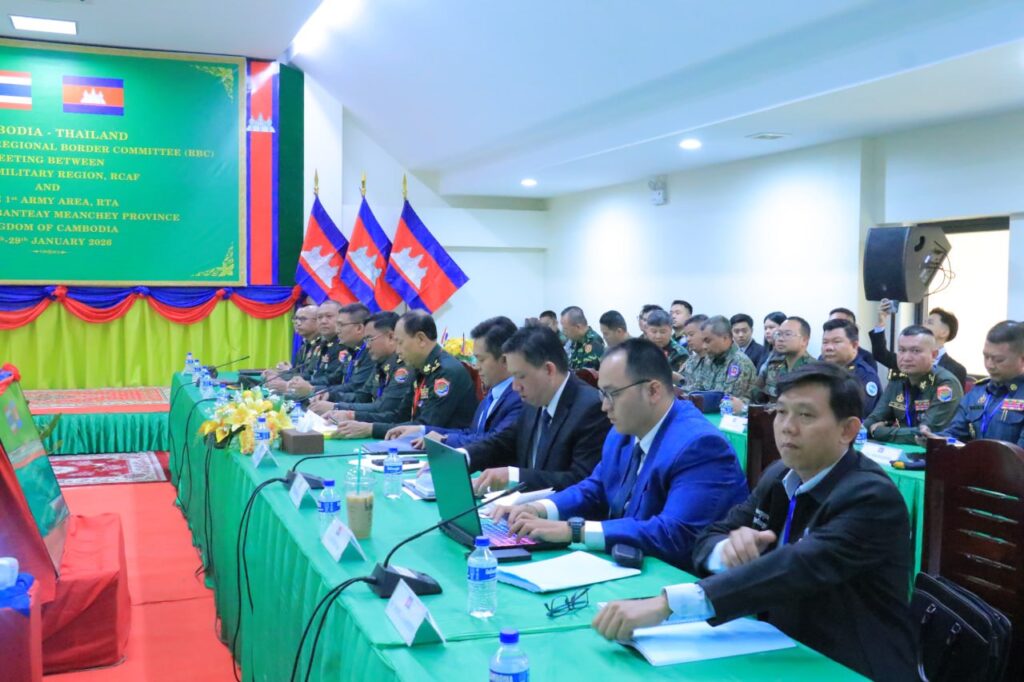 ភ្នំពេញ ៖ កិច្ចប្រជុំក្រុមលេខាធិការដ្ឋាន នៃគណៈកម្មាធិការព្រំដែន ថ្នាក់យោធភូមិភាគកម្ពុជា-ថៃ (RBC) រវាងយោធភូមិភាគទី៥ របស់ភាគីកម្ពុជា និងកងទ័ពភូមិភាគទី១ ភាគីថៃ បានចាប់ផ្តើមកិច្ចប្រជុំរបស់ខ្លួននៅម៉ោង១៤ រសៀលថ្ងៃទី២៧ ខែមករា ឆ្នាំ២០២៦ នៅច្រកអន្តរជាតិប៉ោយប៉ែត ខេត្តបន្ទាយមានជ័យ ព្រះរាជាណាចក្រកម្ពុជា ទល់នឹងខេត្តស្រះកែវ ព្រះរាជាណាចក្រថៃ ។
