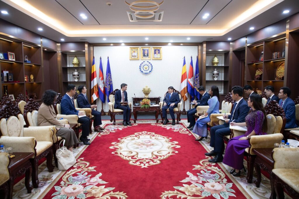 ភ្នំពេញ៖ នាទីស្តីការក្រសួង រសៀលថ្ងៃអង្គារ ទី២៧ ខែមករា ឆ្នាំ២០២៦ ឯកឧត្តម ហេង សួរ រដ្ឋមន្ត្រីក្រសួងការងារ និងបណ្តុះបណ្តាលវិជ្ជាជីវៈ បានទទួលជួបសម្តែងការគួរសម និងពិភាក្សាការងារជាមួយ ឯកឧត្តម Flavio Bonetti តំណាងអង្គការយូណេស្កូ (UNESCO) ថ្មីប្រចាំកម្ពុជា ដើម្បីពង្រឹងកិច្ចសហប្រតិបត្តិការលើវិស័យការងារ និងការបណ្ដុះបណ្ដាលបច្ចេកទេស និងវិជ្ជាជីវៈឱ្យកាន់តែមានសក្តានុពល។